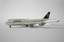 From 1949 to 1987, Herpa had been focusing exclusively on its Cars & Trucks range. However, the first plastic samples of Boeing 747-200s in the 1:00 scale were produced for Lufthansa at an initiation ceremony for a Boeing 737-300 at Nuremberg Airport. Lufthansa then orders the production of the Lufthansa Model-Edition in the 1:200 scale exclusively for the airline.