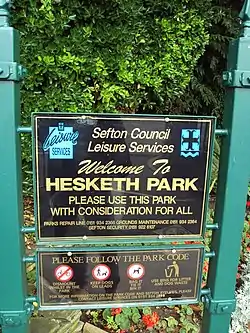 ![]() Hesketh Park entrance sign | |