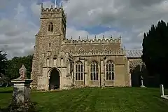 The Church in Hessett is of significance and is featured in Simon Jenkins 1,000 Best Churches.[6] The dedication is to Æthelberht II of East Anglia as St. Ethelbert and the building is a described as typical Suffolk perpendicular church of the 15th century with the chancel being separated from the nave by a 15th century rood screen, which is elegantly painted and gilded on the west side.[7]