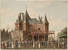 Mrs. Beerenburg turned out to be a woman with a nasty attitude, and so Nepping, together with her maid Adriana van Rijswijk, planned to murder the woman. Beerenburg died on August 31, 1811. On November 9, Hester's elderly father, who lived with her, died as well, followed two days later by her husband Jan. The deaths aroused suspicion, and the bodies were exhumed. The autopsy reports indicated that they had been poisoned with arsenic.[3] Nepping and Van Rijswijk were arrested, as was Verkerk, who had provided the arsenic. In January 1812, they were detained in Amsterdam, where the trial was to take place. All three of them made partial confessions, and the Assizes considered two of the killings proven, handing down death sentences to all three of the accused. From 1810 onwards, because of the annexation of the Netherlands to the First French Empire, French criminal law was applied and an appeal had to be made to the court of cassation in Paris. The court upheld the verdict, and on June 15, 1812, all three were publicly guillotined in front of the Nieuwmarkt in Amsterdam. It was the only time that a death sentence was applied that way in the city's history.[3]