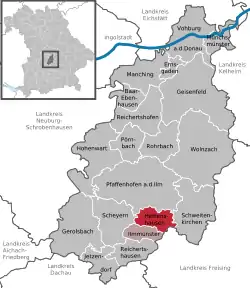 Hettenshausen is a municipality in the district of Pfaffenhofen in Bavaria in Germany.