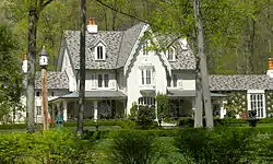 Hewson Cox House is a historic home located in West Whiteland Township, Chester County, Pennsylvania. The house was built in 1854, and is a two-story, three bay, cross-shaped stuccoed stone dwelling in the Rural Gothic-Cottage style. It has a steeply pitched four-gable roof and features a central projecting bay with Tudor-arched openings. It has a 1+1⁄2-story rear kitchen ell. It was renovated in 1904.[2]