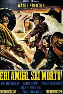 Hey Amigo! A Toast to Your Death (Italian: Ehi amigo... sei morto!, also known as Ehi amigo... Rest in Peace) is a 1970 Italian Spaghetti Western film directed by Paolo Bianchini and starring Wayde Preston.[1][2][3]