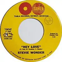"Hey Love" is a 1966 song by Stevie Wonder, from his album Down to Earth. It was released as a B-side to "Travelin' Man," but it also reached the charts in its own right, peaking at number 90 on the Billboard Hot 100 and number nine on the R&B Singles chart in the spring of 1967.[1][2] It has been covered by other artists, including Bettye LaVette and R. Kelly.
