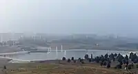 The Heydar Aliyev Park Complex (Azerbaijani: Heydər Əliyev Park-Kompleksi) is the largest urban park in Ganja, Azerbaijan located on an area of 450 hectares. It includes within its boundaries fountains and decorated garden plots, an amphitheater, “Triumphal arch”, Youth Center, Heydar Aliyev Center, Museum of Modern Art, a waterfall and an artificial lake in addition to thousands of trees. The Park Complex was opened in 2014.