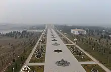- The Main Alley with 53 meters width and 1400 meters length,[7] passing through the Triumphal Arch, continues to the end of the complex where it leads to the Heydar Aliyev Center. The 16 fountains of the park are lined with 24 decorative 12.6 meters height lamp posts made of granite in this alley.[2]