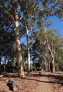 Heywood Park is a public park in the suburb of Unley Park in Adelaide, South Australia. It is home to the last remaining Grey Box gum trees (Eucalyptus microcarpa) on the Adelaide plains, some of which pre-date European settlement. The park takes its name from the place of birth of William Haslam, the property's last private owner; Heywood in Lancashire, England. The City of Unley council purchased the property and it was officially opened to the public on 10 December 1921.[1] Today, the park is popular with families and children, in part due its "huge, magnificent, thick-trunked trees." As of 2014, a number of these have been marked for removal following concerns about falling branches and public safety. Some community members have raised concerns about the tree removals' impact on the park's amenity, wildlife habitat value and cultural significance to the Kaurna people of the Adelaide plains.
