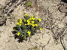 This hibbertia grows in heath, shrubland, usually in sandy soil, mostly in the Avon Wheatbelt.[2][3]