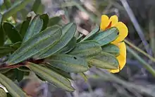 Hibbertia bracteata is widespread in heath and forest in the Sydney district and in the Blue Mountains.