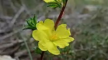 In Victoria, this species is known as H. fasciculata var. prostrata, although the plant is rarely prostrate in that state. In South Australia and Tasmania, it is known as Hibbertia prostrata.[1][3][4][5][10]