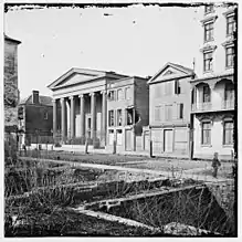 Hibernian Hall is a historic meeting hall and social venue at 105 Meeting Street in Charleston, South Carolina, United States. Built in 1840, it is Charleston's only architectural work by Thomas Ustick Walter, and a fine example of Greek Revival architecture. The wrought iron gates were made by Christopher Werner, a German-American master ironworker in Charleston.