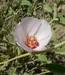 In California, Rock Hibiscus is exclusive to the southeast, the Colorado Desert-(northwestern Sonoran Desert) and neighboring Baja California state, Mexico.[1]