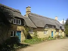There are ten dwellings, including two substantial farmhouses. Most of the smaller cottages have thatched roofs.