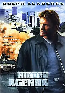 Hidden Agenda is a 2001 Canadian action film written by Les Walton and directed by Marc S. Grenier. It stars Dolph Lundgren as Jason Price, who is a former government agent who now earns money helping people disappear through a program he engineered. When his childhood friend Sonny (Ted Whittall) and mobster Paul Elkert (Serge Houde) both come to Price for help, things begin to go awry. Someone has infiltrated Price's network, and his clients begin turning up dead. He's helped in his investigation by the mobster's assistant, Renee Brooks (Maxim Roy) -- but no one is who they seem to be.[1]