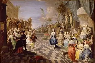 One of Hieronymus Janssens' dance pieces depicts King Charles II of England dancing with his sister Mary of Orange at a ball in The Hague during the period of his exile.[6]