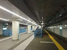 The station currently consists of one underground island platform and four tracks. Express trains typically utilize the outer (express) tracks, bypassing the station, while local trains usually stop at the station on the inner (local) tracks.