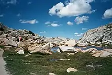 Tuolumne Meadows Lodge is located a short distance off the Tioga Road, and is accessible by car. It is located on the Dana Fork of the Tuolumne River in Tuolumne Meadows at an elevation of 8,600 feet. It was among the first three camps established in 1916, and is the largest and most popular of the High Sierra Camps.[2] Due to World War I, the camp was closed from 1918 to 1922. It has operated continuously (though seasonally) since, including through World War II.