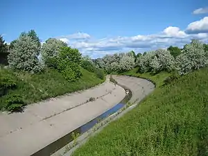 Due to development in Scarborough, which has substantially increased the amount of water that historically travelled through the river, there are a number of artificial diversions to decrease erosion and guide the river past obstacles. For example, there are a large number of areas where the river is lined with rock cages. There are small dams to even out the flow in areas where upstream storage reservoirs are possible, increasing its depth. The river travels through culverts under some major streets. In addition, many of the city's storm sewers drain into the river. The valley of Highland Creek contains a number of interconnected parks which have a system of paved bike and walking paths. As a result of these numerous channel modification projects, mostly implemented in the 1960s and 1970s, much of the creek does not follow its natural path. This is in contrast to the nearby Rouge River, which has fewer in-stream barriers and extensive riparian and floodplain vegetation, and where a wider variety of wildlife, including some climax forest species, can be found.