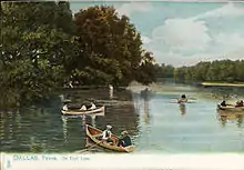 The land now known as Highland Park was bought in 1889 by a group of investors from Philadelphia, Pennsylvania, known as the Philadelphia Place Land Association, for an average price of $377 an acre, with a total of $500,000. Henry Exall, an agent, intended to develop the land along Turtle Creek as Philadelphia Place, exclusive housing based on parkland areas in Philadelphia. He laid gravel roads, and dammed Turtle Creek, forming Exall Lake, before the Panic of 1893 brought a blow to his fortunes, halting development. Afterwards, he began a horse breeding farm. In the 1890s, Exall Lake was a common picnic destination for Dallas residents.