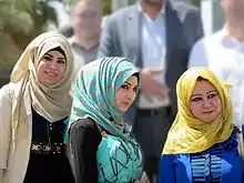 The veil gradually disappeared in the following decades, so much so that by 1958 an article by the United Press (UP) stated that "the veil is unknown here."[106] However, the veil has been having a resurgence since the Iranian Revolution, concomitant with the global revival of Muslim piety. According to The New York Times, as of 2007 about 90 percent of Egyptian women currently wear a headscarf.[107] Women chose to adopt the veil in the post-1970s period, with some contradicting relatives who were against the hijab.[105]