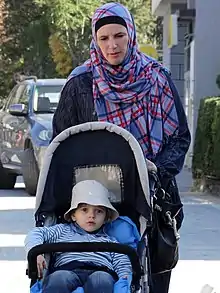 In 2016, a ban on the wearing of face-covering clothing in public was adopted by the Bulgarian parliament.[36] The Bulgarian parliament enacted the ban on the basis of security concerns, however the ban stimulated conflict as 10 percent of the country's population identifies as Muslim. Women who violate the burqa ban face fines up to €770 (~US$848) and have their social security benefits suspended.[37]