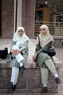 Official measures were relaxed under Reza Shah's successor, Mohammad Reza Pahlavi, and the wearing of a headscarf or chador was no longer an offence, but was still considered an indicator of backwardness or of membership of the lower class.[142] Discrimination against women wearing the headscarf or chador was still widespread with public institutions actively discouraging their use, and some eating establishments refusing to admit women who wore them.[135][145]