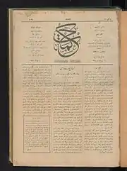The weekly journal Hikmet (Ottoman-Turkish: حکمت; DMG: Ḥikmet; English: "Wisdom"), published in Istanbul from 1910 to 1911, was one of the first sufistic journals that were founded during the Second Constitutional Period.[1] It was published by Şehbenderzâde Filibeli Ahmed Hilmi (1865-1914), a Turkish Sufi, author and thinker. The journal had the subtitle “Unity is life and dissension is death“ („İttihad hayattır, tefrika memattır“).[2] Two volumes with a total of 79 issues were published and covered political, economic and social topics as well as articles on philosophy, islamic mysticism and sufistic literature.[3] Hilmi's criticism of the “Committee of Unity and Progress” (İttihat ve Terakki Cemiyeti) ultimately led to the suspension of the journal Hikmet.[4] In addition to Hikmet Hilmi also published the journals Çaylak, İttihat-ı İslam and Coşkun Kalender.