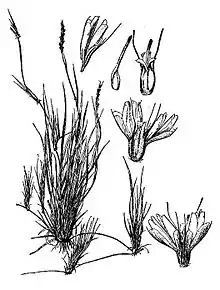Hilaria belangeri is a species of grass known by the common name curly mesquite, sometimes written curlymesquite or curly-mesquite. It is not related to mesquites, which are legumes. This grass is native to Mexico and the southwestern United States from Arizona to Texas.[1]