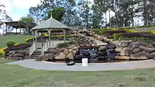 The Logan West Community Centre is located at 2 Wineglass Drive (27.67499°S 153.02902°E) and has a hall with a capacity of 410 people (conference style) and 300 people (banquet style).[7] It began with the relocation of a house from Jacaranda Avenue Woodridge in October 1982. The house had been used as the headquarters of the Logan and Albert Library Board and then the Burragah Aboriginal Centre. A new community centre was built in 1988. The rotunda and water gardens are suitable for weddings and photography sessions.[8]