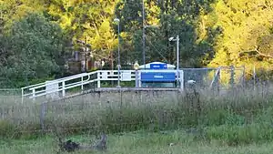 Hilldale consists of a single wooden and concrete platform about three metres long. It is serviced by NSW TrainLink Hunter line services travelling between Newcastle and Dungog. There are five services in each direction on weekdays, with three on weekends and public holidays.[3] It is a request stop with passengers required to notify the guard if they wish to alight and 'flag' the train down if they wish to board.