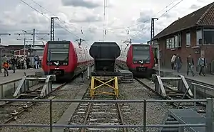 Hillerød station (Danish pronunciation: [ˈhiləˌʁœðˀ stæˈɕoˀn]) is a railway station serving the city of Hillerød north of Copenhagen, Denmark. It is the terminus of four railways lines: