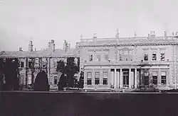 During the Second World War, the mansion was damaged in a bombing raid in October 1940. Seven bombs fell on the building and grounds, with one falling directly down the well shaft in the central courtyard.[8] Another penetrated a bedroom wall, waking the resident inside who had been sleeping. The bomb failed to detonate, and the lady is recorded as having told staff it was time she headed to the air raid shelter.[7]