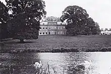After the first house burnt down, the present structure was built in 1844, in a classical Victorian style.[4] In 1892, an area of the estate south of the house was established as Hillingdon Golf Club, founded by Charles Newton who lived at Hillingdon House, and Charles Stevens, a partner of a local timber company.[8] The estate of Frederick Cox, Richard Henry Cox's grandson, placed the house on the market in 1914, describing it as "a brick and stone building, partly stuccoed, with extensive outbuildings and ornamental gardens."[5] The house and gardens, together with the surrounding parkland and artificial lake created by damming a section of the River Pinn, amounted to more 200 acres (81 ha).[7]