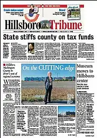 Owned by the Pamplin Media Group, the newspaper published its first issue on September 7, 2012.[1] It was Pamplin's first new paper since 2001, when the company started the Portland Tribune,[2] and was designed to complement its other local papers in the Portland metropolitan area.[3][4] The Tribune competed with the now-defunct Hillsboro Argus, which was published by Advance Publications, which also publishes The Oregonian that competes with the Portland Tribune.[3][5][6] John Schrag served as the first publisher,[7] with Kevin Harden, Jim Redden, and Jennifer Anderson as the news team.[4] Pamplin distributed the paper free at newsstands in the Hillsboro and Aloha areas, as well as via home delivery with a paid subscription. For most of the paper's history, the weekly newsprint edition was published on Fridays, but this was changed to Wednesdays in February 2018.