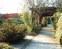 The whole of the park and some of the surrounding streets fall within the Hillsborough Park Conservation Area, created in 1993 it highlights several areas of the park which are of special interest. These are the Grade II listed Hillsborough House, as well as the east and west lodges which are situated on Penistone Road and Middlewood Road respectively, both the lodges are Grade II listed and date from the early part of the 19th century.[4][5] The parks distinctive boundary walls and railings are mentioned as are the row of Poplar trees on the south side of the park.[6]