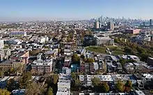 The Hilltop is the eastern section of the Journal Square district of Jersey City, New Jersey.[1][2][3] The name is a reflection of its location atop Bergen Hill, the southern portion of the Hudson Palisades, on either side of the cut, or excavated ravine, through which the Port Authority Trans Hudson rapid transit system travels, offering some streets views of Downtown Jersey City, the New York Skyline, and the Upper New York Bay.