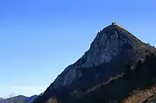 A hilltop castle[1] is a type of hill castle that was built on the summit of a hill or mountain. In the latter case it may be termed a mountaintop castle. The term is derived from the German, Gipfelburg, which is one of a number of terms used in continental castellology to classify castles by topology. The chief advantage of such a strategically selected site was its inaccessibility. The steep flanks of the hill made assaults on the castle difficult or, depending on the terrain, even impossible. In addition, it often commanded excellent fields of view and fire over the surrounding countryside. The sheer height of the castle above the local area could also protect the occupants of the castle from bombardment. In addition, the prominent location of such a castle enhanced its status as a residence.