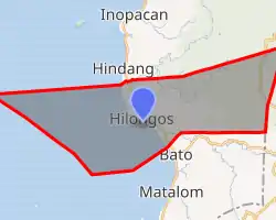 Hilongos shares borders with the municipalities of Hindang in the north, Mahaplag, Sogod (Southern Leyte) and Bontoc (Southern Leyte) in the east, Bato to the south and Camotes Sea to the west.