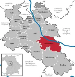 listen)) is a town in the district of Roth, in Bavaria, Germany. It is situated 10 km southeast of Roth bei Nürnberg and 30 km south of Nuremberg, close to the lake 'Rothsee.