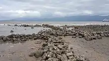 Shell middens and fish traps are evidence of their activities.[19] Fish were an important source of food for Aboriginal people living in the area. The Bandjin fish trap rock formations exploited the cyclic tidal regime, not only capturing fish, but also holding their catch alive for days. At times, many fish would be caught in the traps. These fish would not be killed nor eaten, instead they were left for the birds. To this day fish are still captured by these traps feeding the local birds.