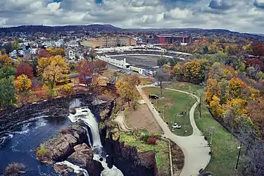 Hinchliffe Stadium (/ˈhɪntʃ.lɪf/) is a 10,000-seat stadium located in Paterson, New Jersey. The venue was completed in 1932 and sits on a dramatic escarpment above Paterson's National Historic Landmark Great Falls, and surrounded by the city's national landmark historic district, the first planned industrial settlement in the nation (chartered 1792). It is one of only a handful of stadiums surviving nationally that once played host to significant Negro league baseball during America's Jim Crow era. The stadium was designated a National Historic Landmark in March 2013 and a Paterson Historic Landmark[5] in May 2013. In December 2014, Congress passed legislation to include the stadium in the Great Falls National Landmark District.[6]