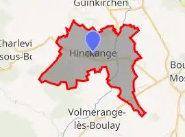 Hinckange (French pronunciation: [ɛ̃kɑ̃ʒ]; German: Heinkingen) is a commune in the Moselle department in Grand Est in north-eastern France.