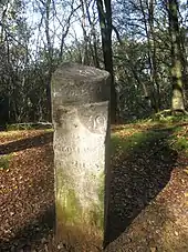 Among the artefacts found was an old milestone that was discarded during the rebuilding of the road in 1826. The 1811 Ordnance Survey map was used to identify the original position of the stone where it has since been re-erected. The pre-1826 road is now a pedestrian way to Gibbet Hill.[32] Other artefacts of archaeological interest included two lime kilns found near the Thursley side of the works dating from the 18th or 19th centuries. It is probable that lime produced by the kilns used limestone or chalk from Petersfield 25 kilometres (16 mi) away and would have been used to counteract the acid nature of the soil.[8]