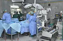 The hospital was started by D. K. Srinivasan, a business person and social worker and C. S. Gangadhar Sharma, a leprologist,[1] as an outpatient clinic in a shed on 5 December 1982.[2] On 14 April 1985, a 10,000 sq ft 3-storied Sri Rama Nama block was opened by the then Vice President of India, R. Venkataraman. The same year, consultation on ENT, gynaecology, and psychiatry and weekly camps on ophthalmologic surgery were started. In June 1988, the hospital started expanding on an adjacent 1.7 acre land. On 14 September 1988, an in-patient wing with 20 beds and a major operation theatre were opened and general surgeries were conducted. On 11 October 1992, a 30,000 sq ft building with 100 beds was opened. In May 1993, maternity and childcare services began. In January 1995, the ophthalmic and geriatric blocks were opened and round-the-clock laboratory became operational. On 1 November 1997, Phaco emulsification unit was started. Elisa reader and ventilator facilities were added in 1998. On 12 February 1999, a haemodialysis unit and speech therapy and audiogram facility were opened. On 3 March 2000, a blood bank was opened. In 2001, various facilities such as mammography, 300 MA x-ray unit, automatic film processor, C'Arm table, operating microscope and Yag laser were added. The blood bank too was upgraded besides the induction of a tempo traveller. In 2004, a critical care block was inaugurated. In 2007, color Doppler ultrasound scanner and stress test system were added to the hospital's facilities. In 2008, Prof. S. R. S. Varadhan Block, T. S. Santhanam Block, and cardio-thoracic block were added.[3]