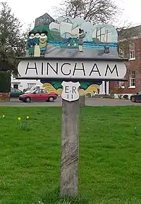 Hingham is a market town and civil parish in mid-Norfolk, England. The civil parish covers an area of 14.98 km2 (5.78 sq mi) and had a population of 2,078 in 944 households at the time of the 2001 Census,[2] increasing to 2,367 at the 2011 Census.[3]