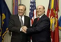 During his presidential term in office the country was affected by one of the worst economic crises, generated by the bankruptcy of three major commercial banks in the country, which resulted in high inflation, high country risk rating, currency devaluation and increasing local poverty.[5][6][7] Further damaging to Mejía's reputation was the arrest of ex-army captain Quirino Paulino. Quirino was arrested after being linked to a large drug trafficking ring, and in the legal and political aftermath, connections to Mejía were discovered. Mejía sent 604 Dominican troops to fight in the Iraq War.[8]