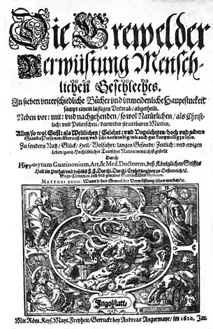 - Die Grewel der Verwüstung menschlichen Geschlechts. Angermayr, Ingolstadt (1610 version) and Bayerische Staatsbibliothek, München (digital version).