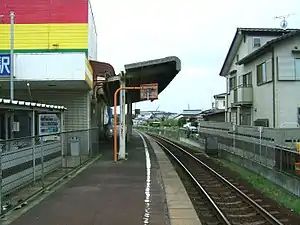 The station has a single side platform serving traffic in both directions. The station building is a portion of a local supermarket. The station was modernized in 2011 with toilets and wheelchair accessibility.