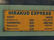 The 20807/20808 Hirakud SF Express is a tri-weekly express train which runs between Amritsar and Visakhapatnam. It passes through the cities of Delhi, Agra, Gwalior, Jhansi, Bilaspur, Sambalpur, Bhubaneswar and Brahmapur. It was initially introduced between Sambalpur and Hazrat Nizamuddin railway station (Delhi) in 1992. Later in 2002 it was extended to Bhubaneswar and thereafter up to Visakhapatnam and Amritsar in the coming years.