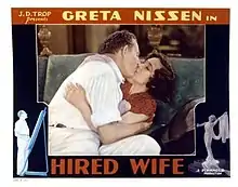 Hired Wife is a 1934 American drama film directed by George Melford and starring Greta Nissen, Weldon Heyburn and James Kirkwood. It was produced as a second feature by the independent company Pinnacle Productions.[1] It was shot at the Sun Haven Studios in Florida rather than in Hollywood. Location shooting took place at the Soreno Hotel in St. Petersburg, Florida.